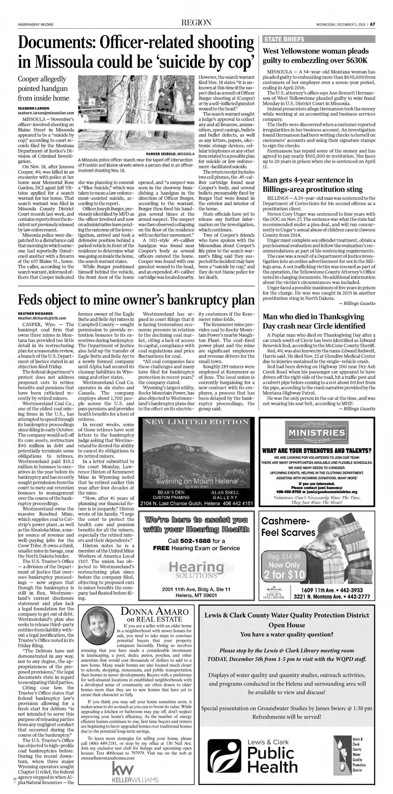 - “Woman Charged with Promoting 17-Year-Old for Prostitution, Held on $35,000 Bond,” Billings Gazette, December 24 2015.