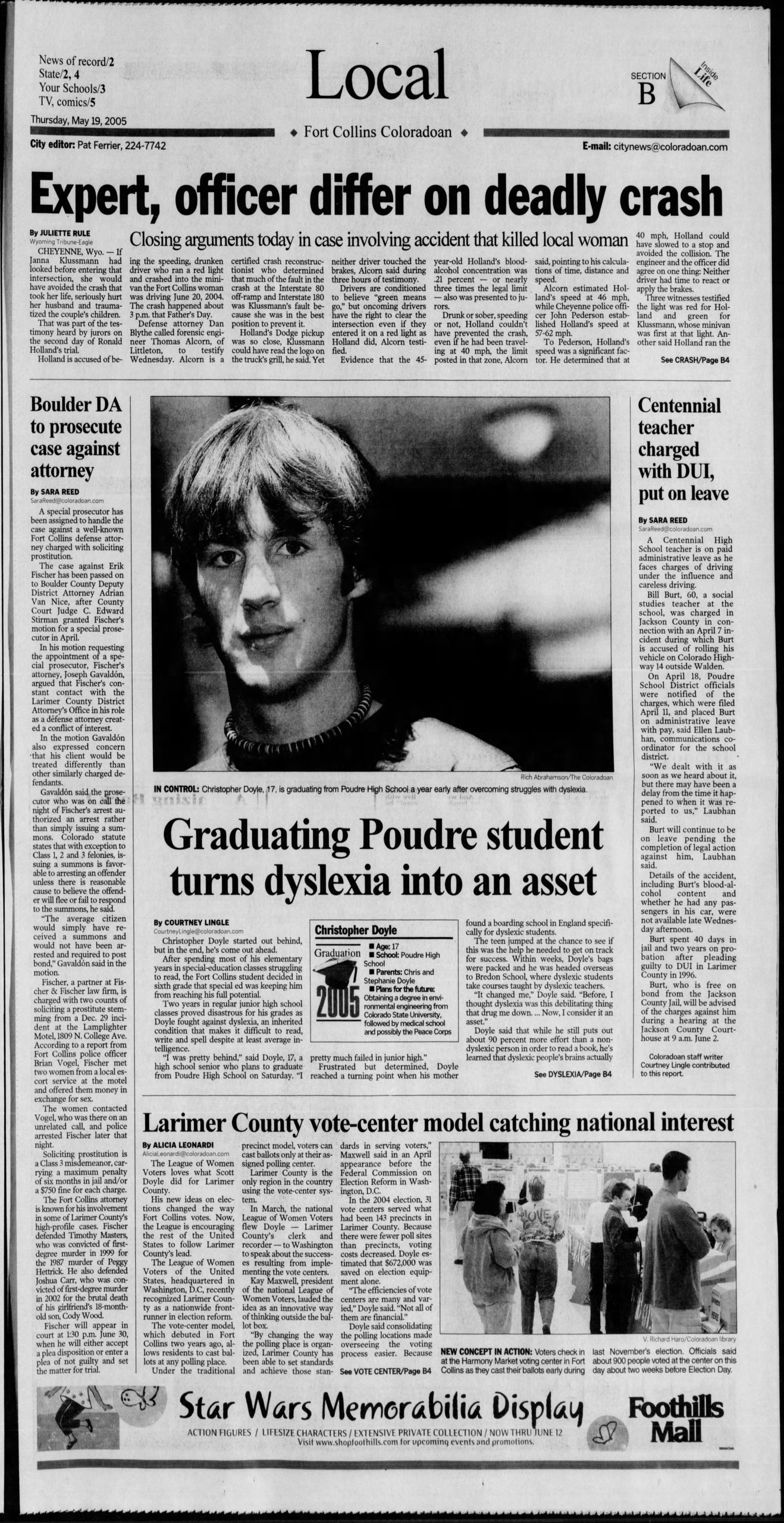 - “Man Accused of Soliciting a Prostitute; Three Homeless People Arrested in Alleged Incident”, Boulder Daily Camera, February 6 2005.