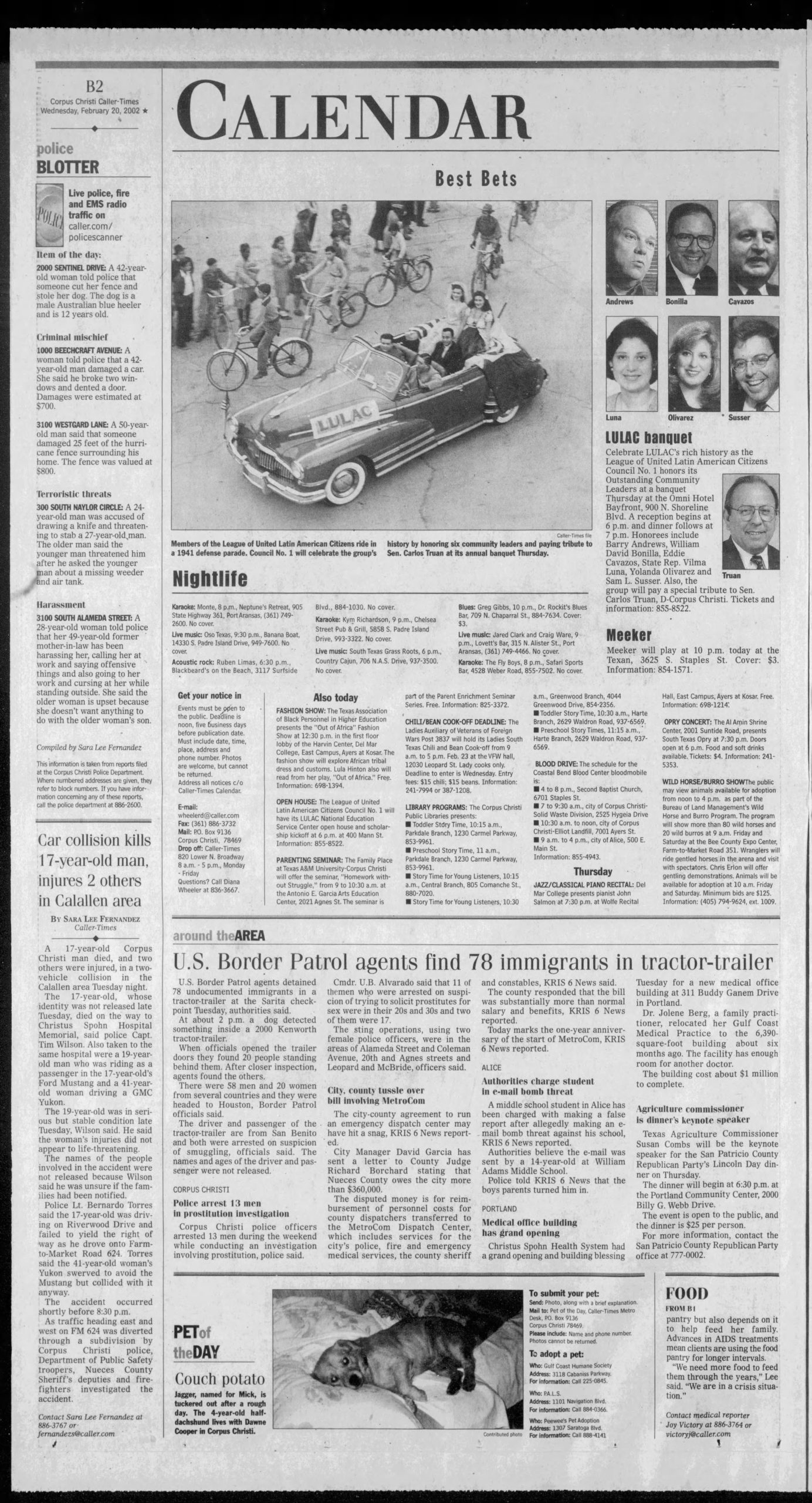 - “Police Blotter: 07.03.05”, Corpus Christi Caller-Times, July 3 2005.