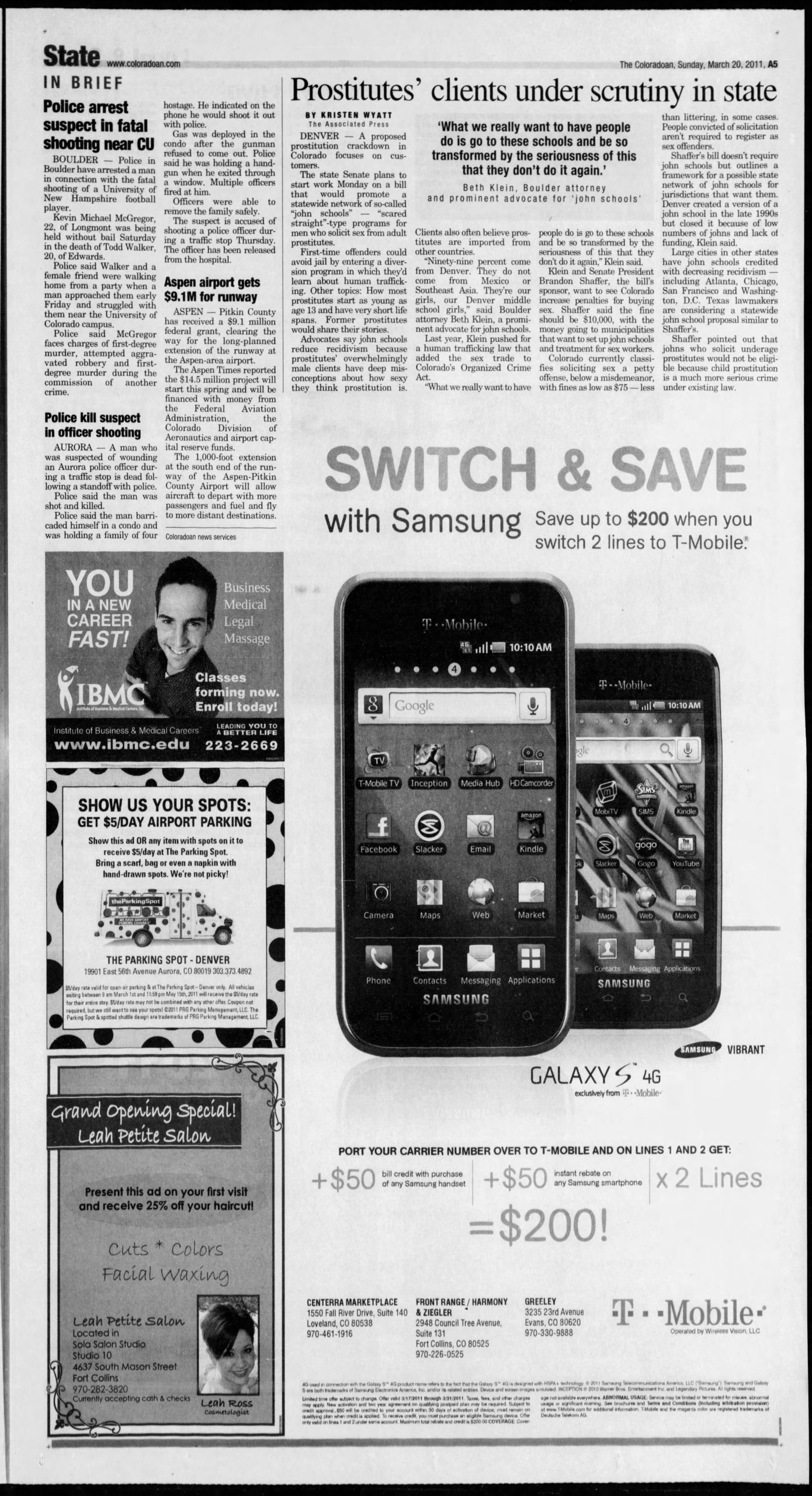 - “Prostitutes’ Clients Under Scrutiny in Colorado”, CBS/KCNC-TV 4, March 21 2011.