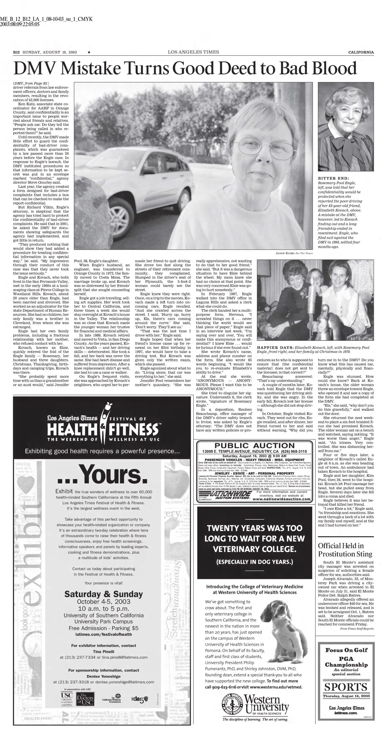 - “Officer Held in Prostitution Sting”, Los Angeles Times, August 10 2003.