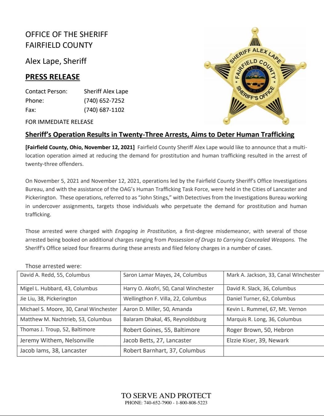 - https://www.sciotopost.com/fairfield-county-twelve-arrested-in-human-trafficking-sting/ (August 2022)