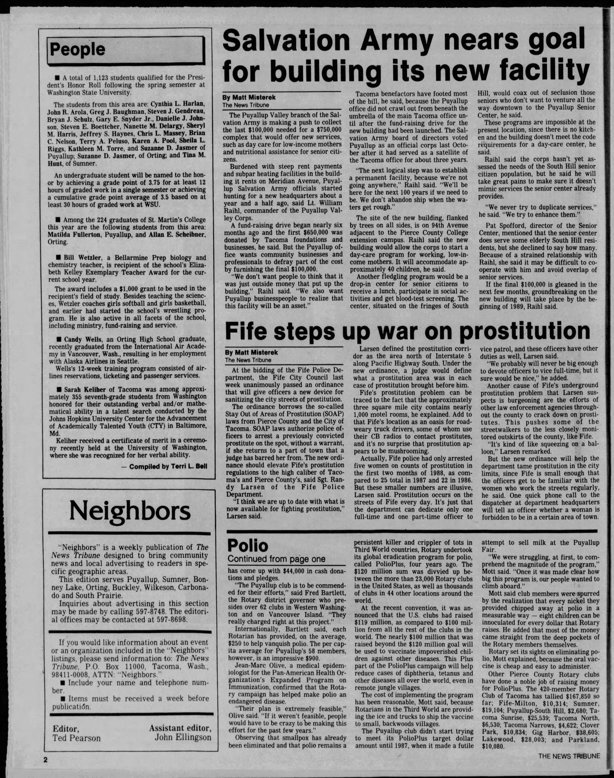 - “Fife Goes Proactive to Stop Prostitutes; Proposed Law: Police Want Legal to Make Arrests”, Tacoma News Tribune, December 13 2003.