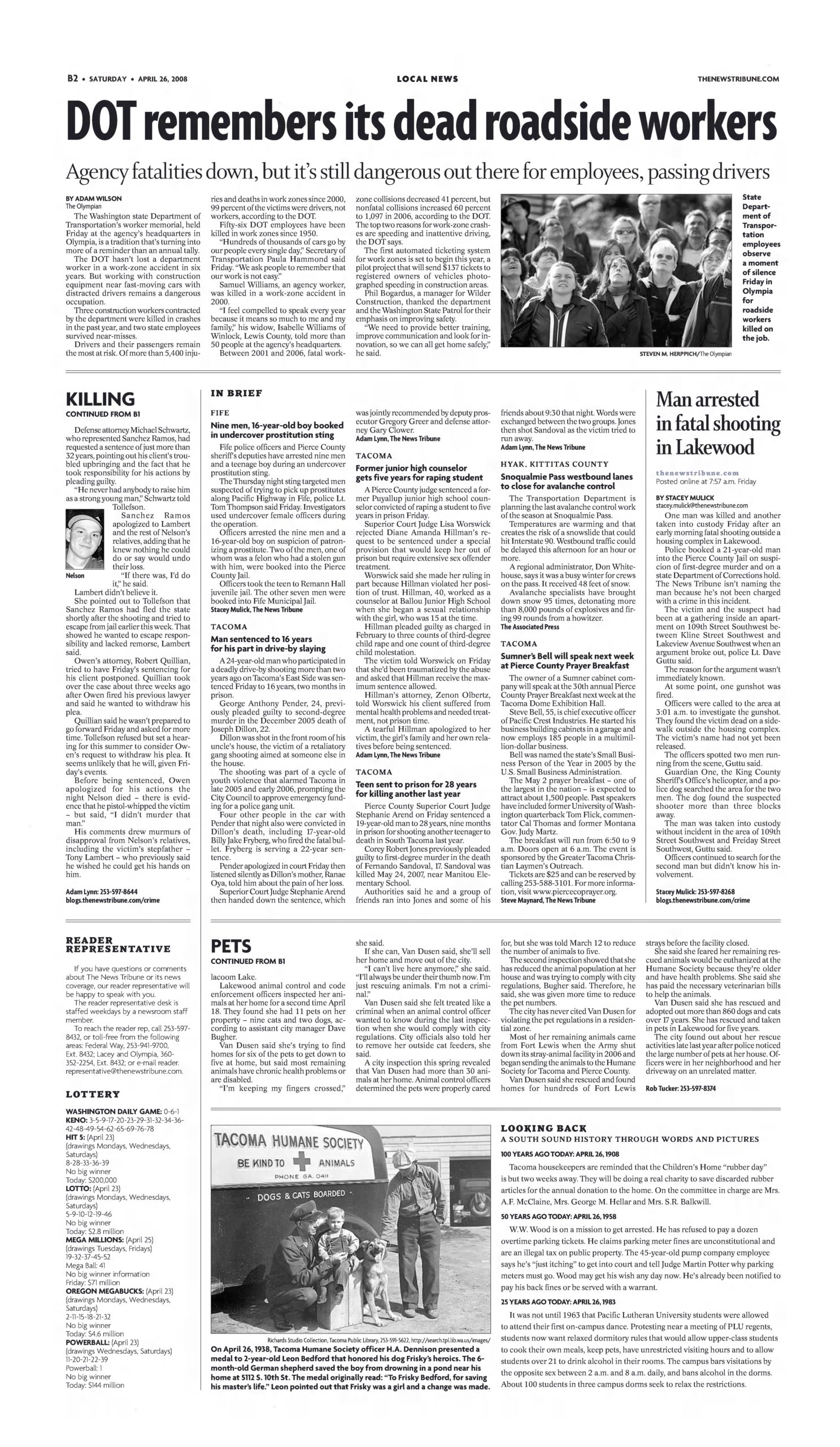 - “Police Beat”, Tacoma News Tribune, March 24 1998.
