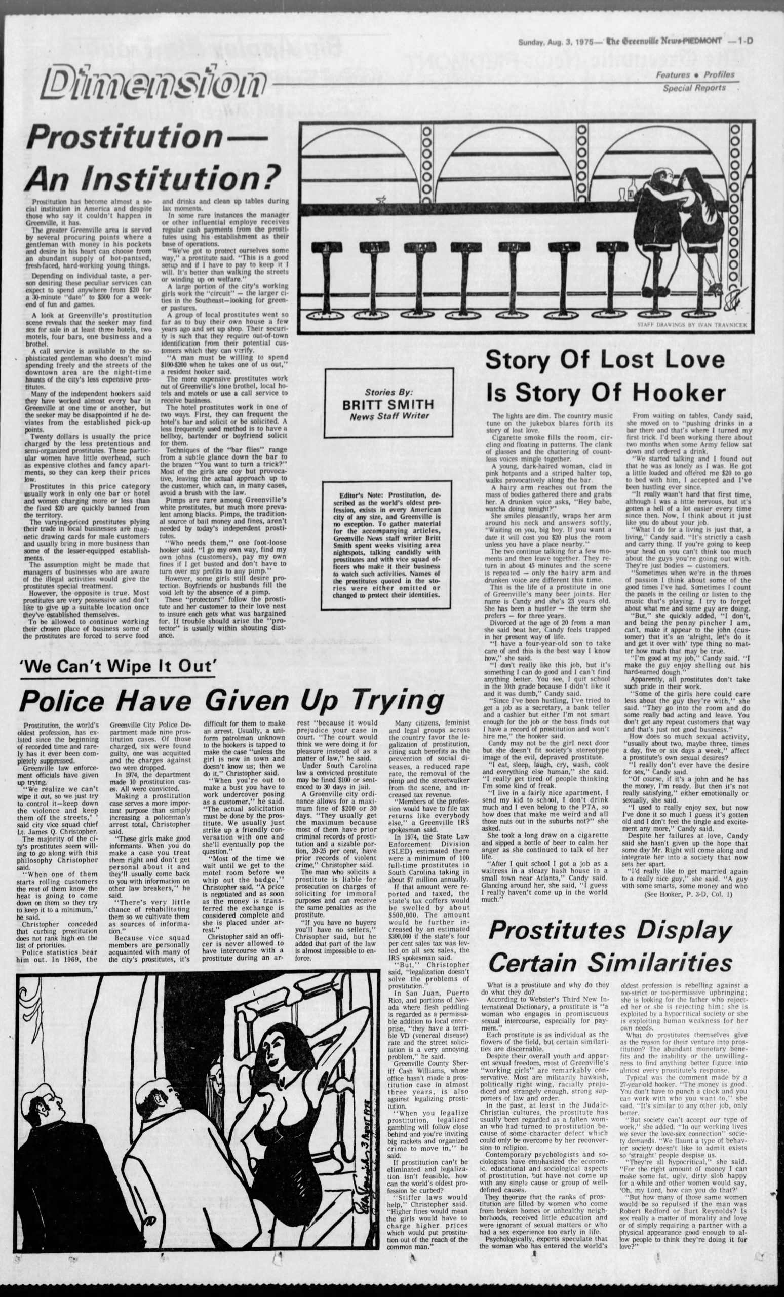 - “Greenville Police Arrest 20 on Prostitution Charges,” Greenville News, May 15 2015.