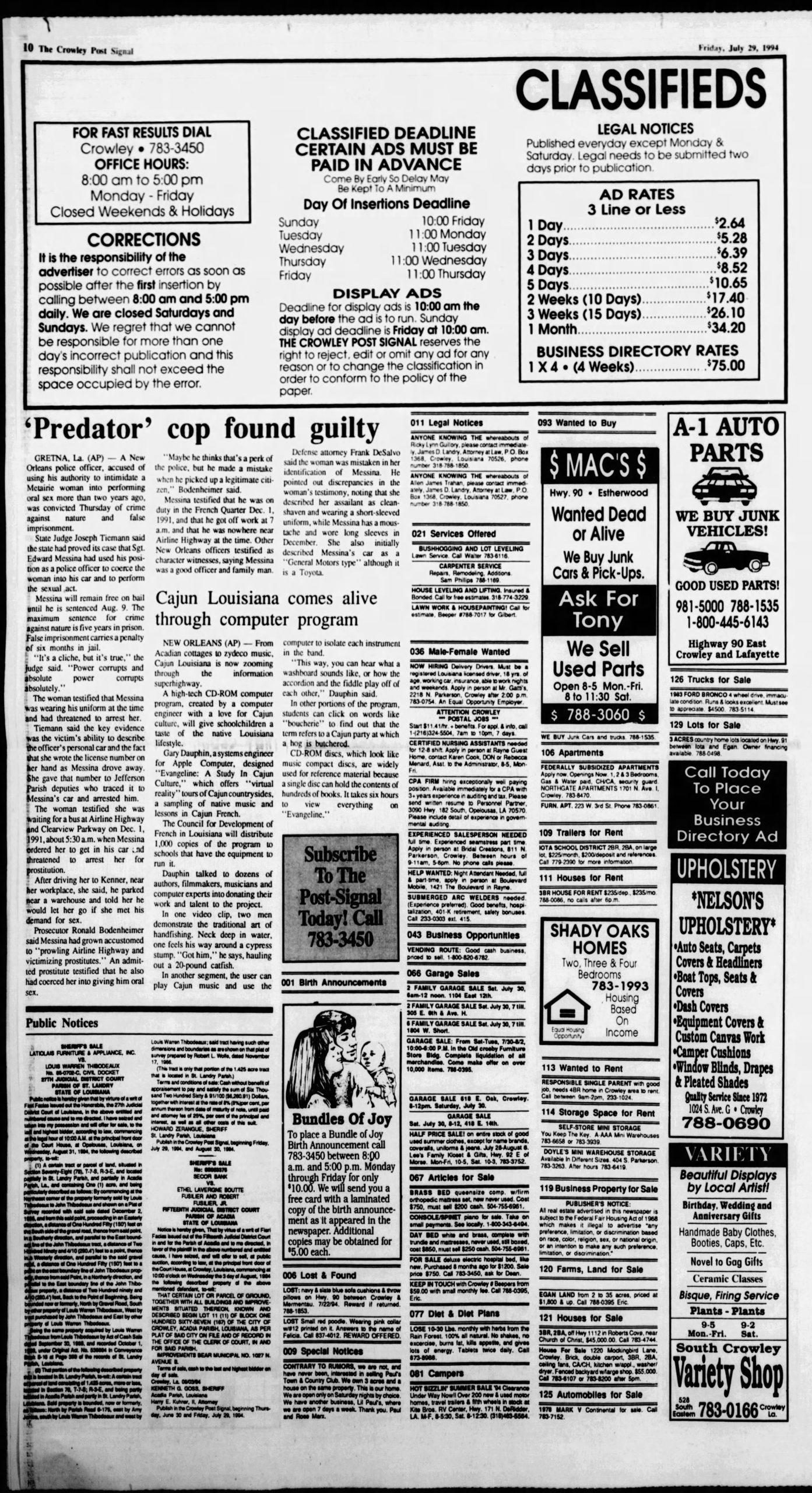 - “Men Booked on Sex Charges”, New Orleans Times-Picayune, November 2 1994.