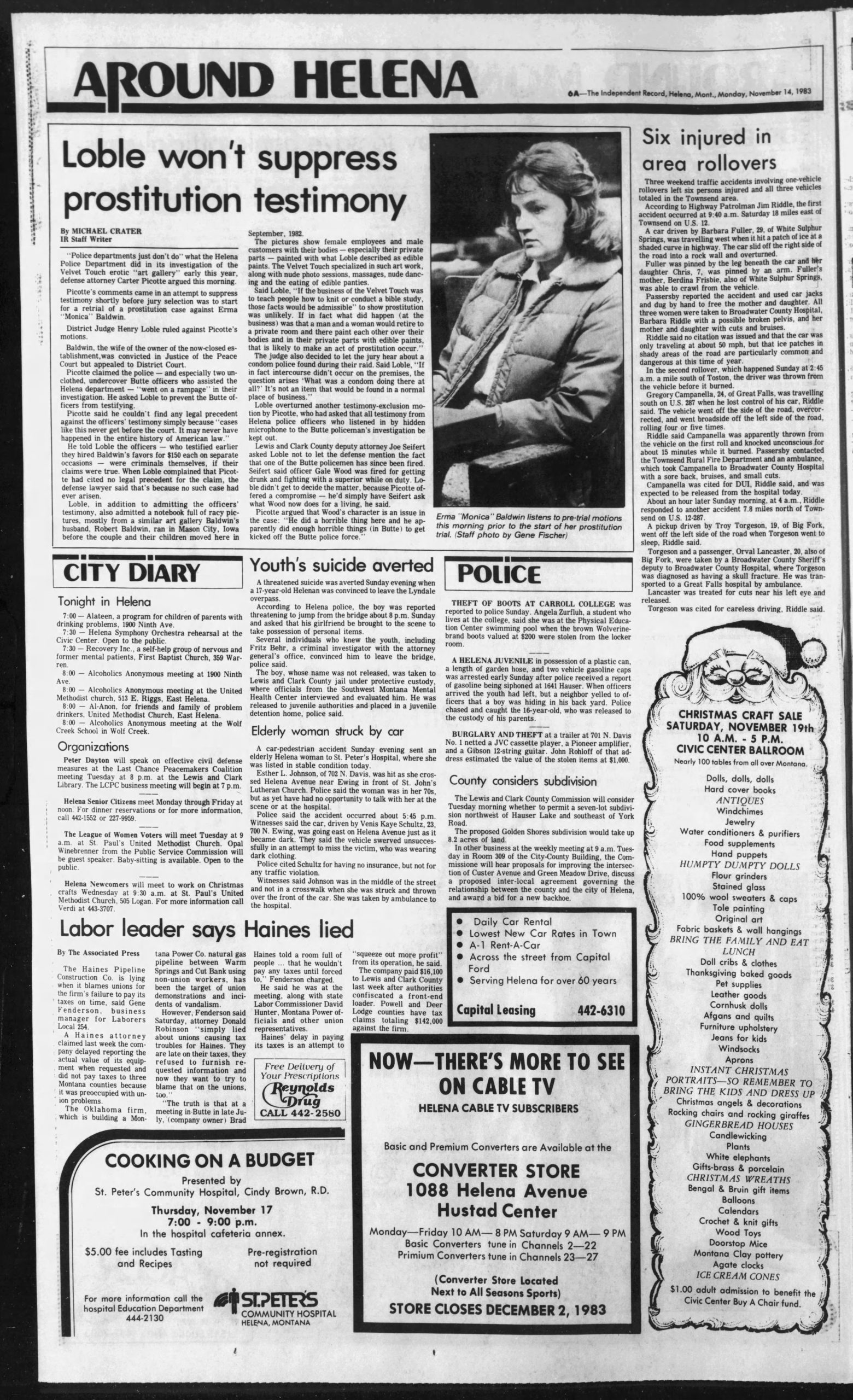 - Prostitution allegations triggered police probe of Helena arts studio (1983)