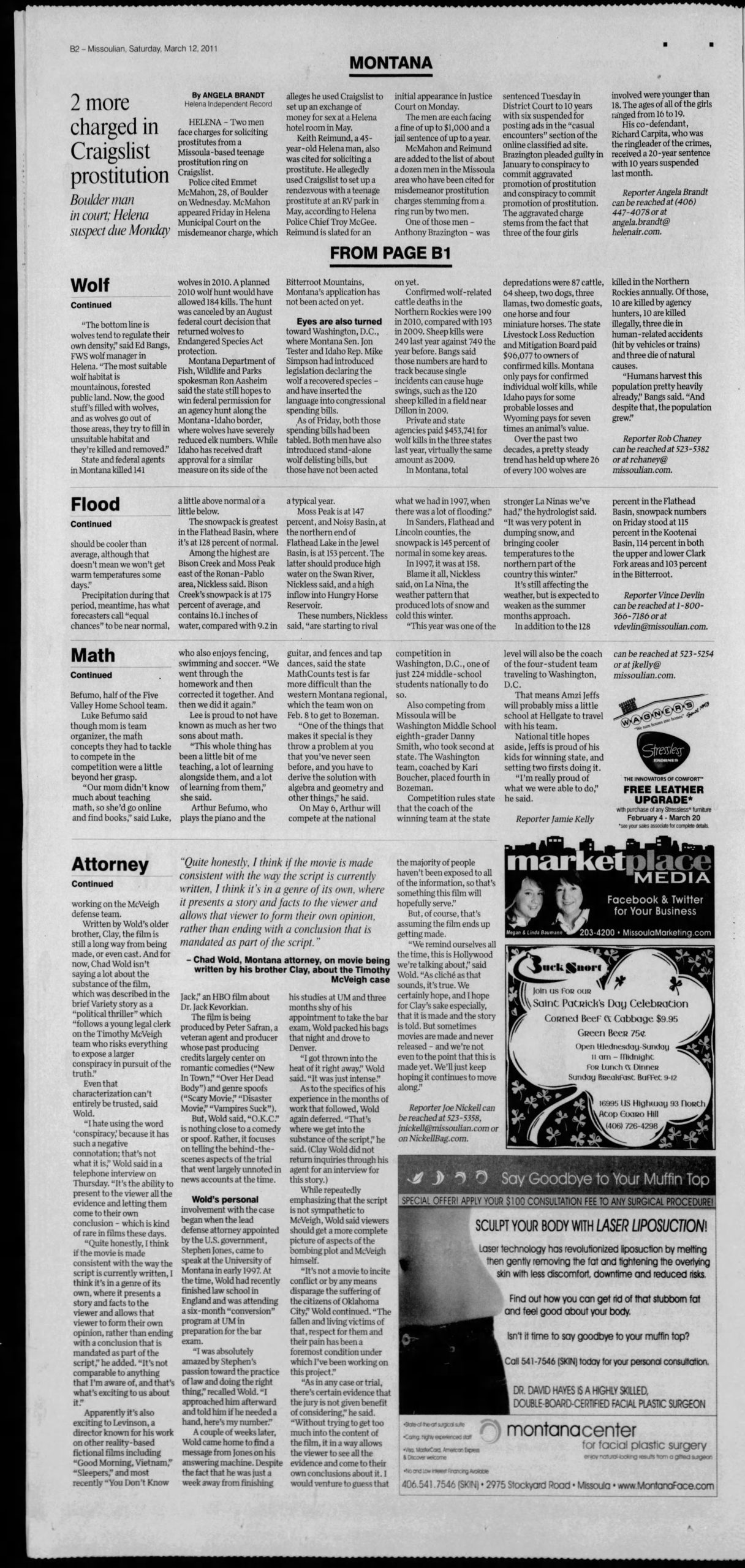 - “Two Men Charged in Craigslist Prostitution,” Helena Independent Record, March 11 2011.