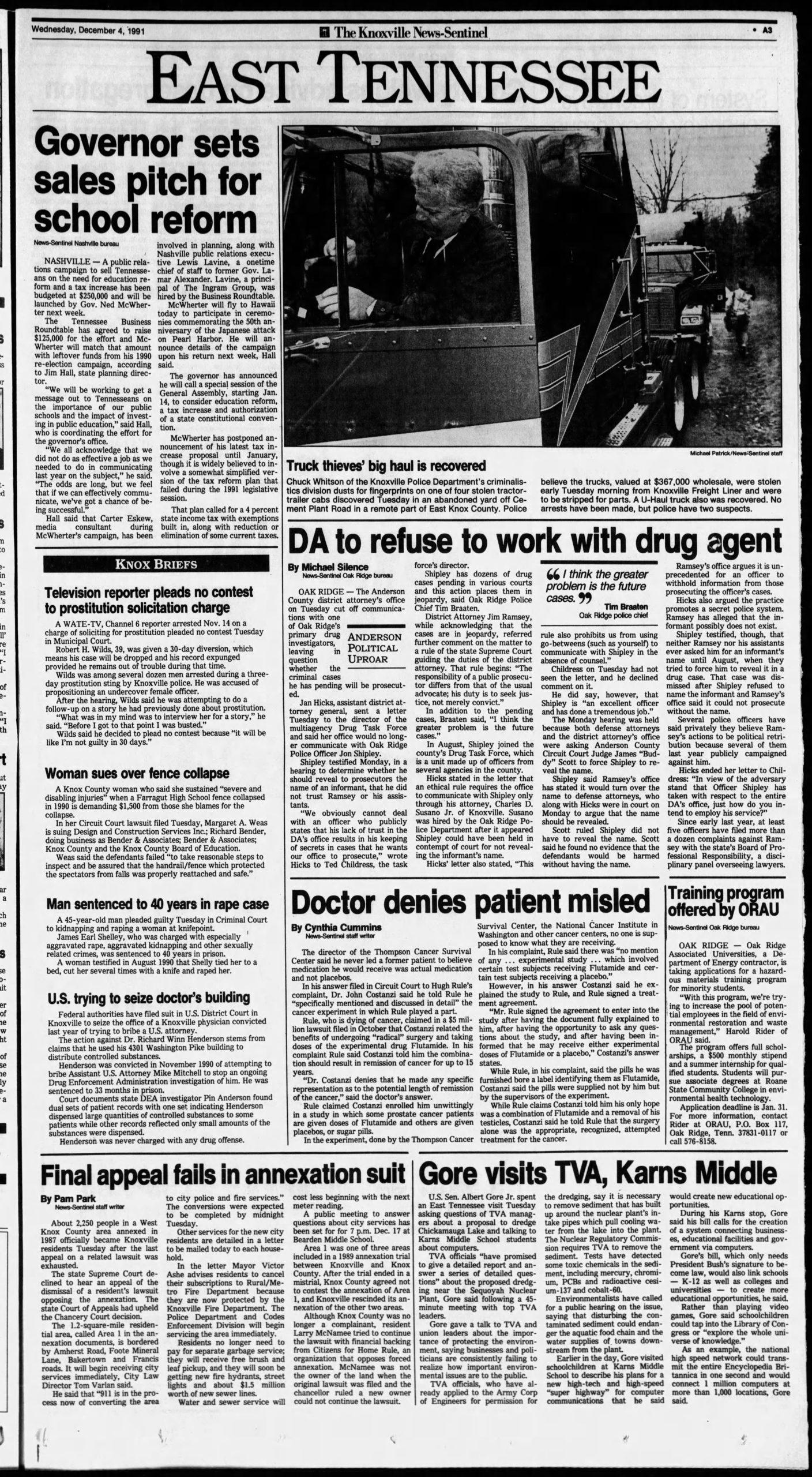 - “Prostitution Sting Nabs 30-Plus”, Knoxville News-Sentinel, July 19 1991.