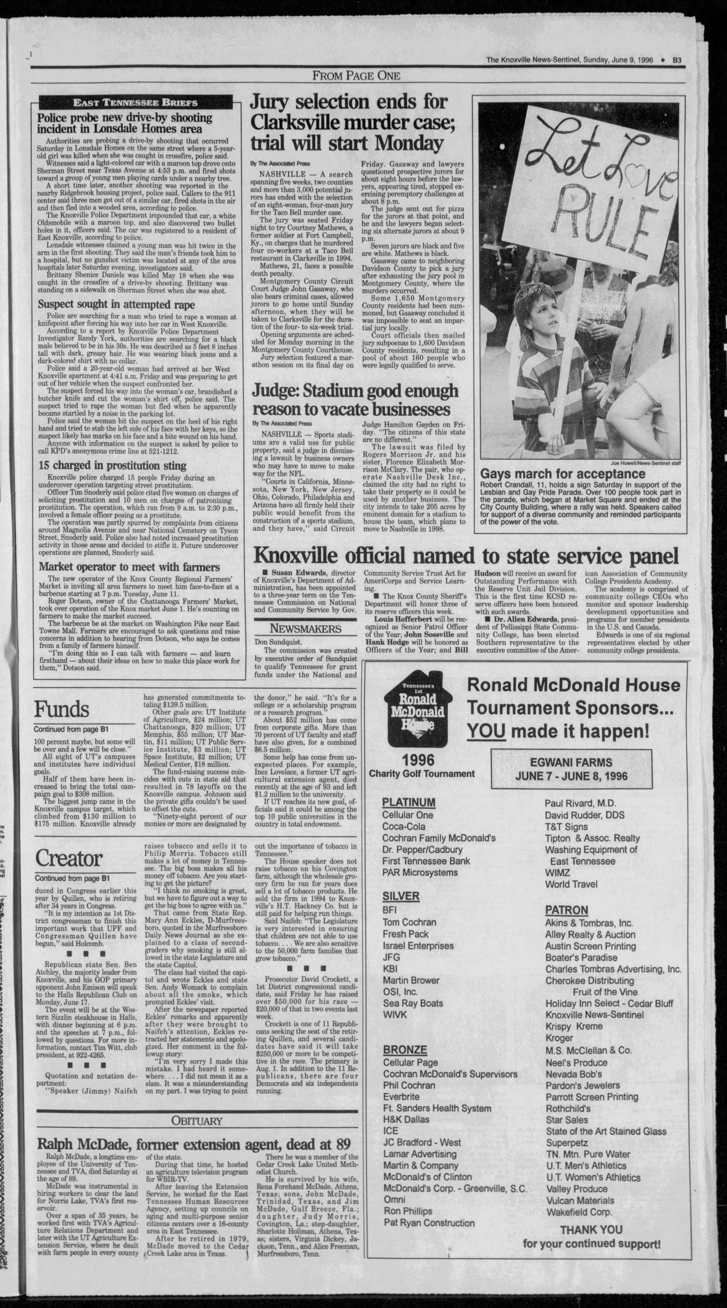 - “Prostitute Who Escaped After Attack Testifies”, Knoxville News-Sentinel, May 21 1996.