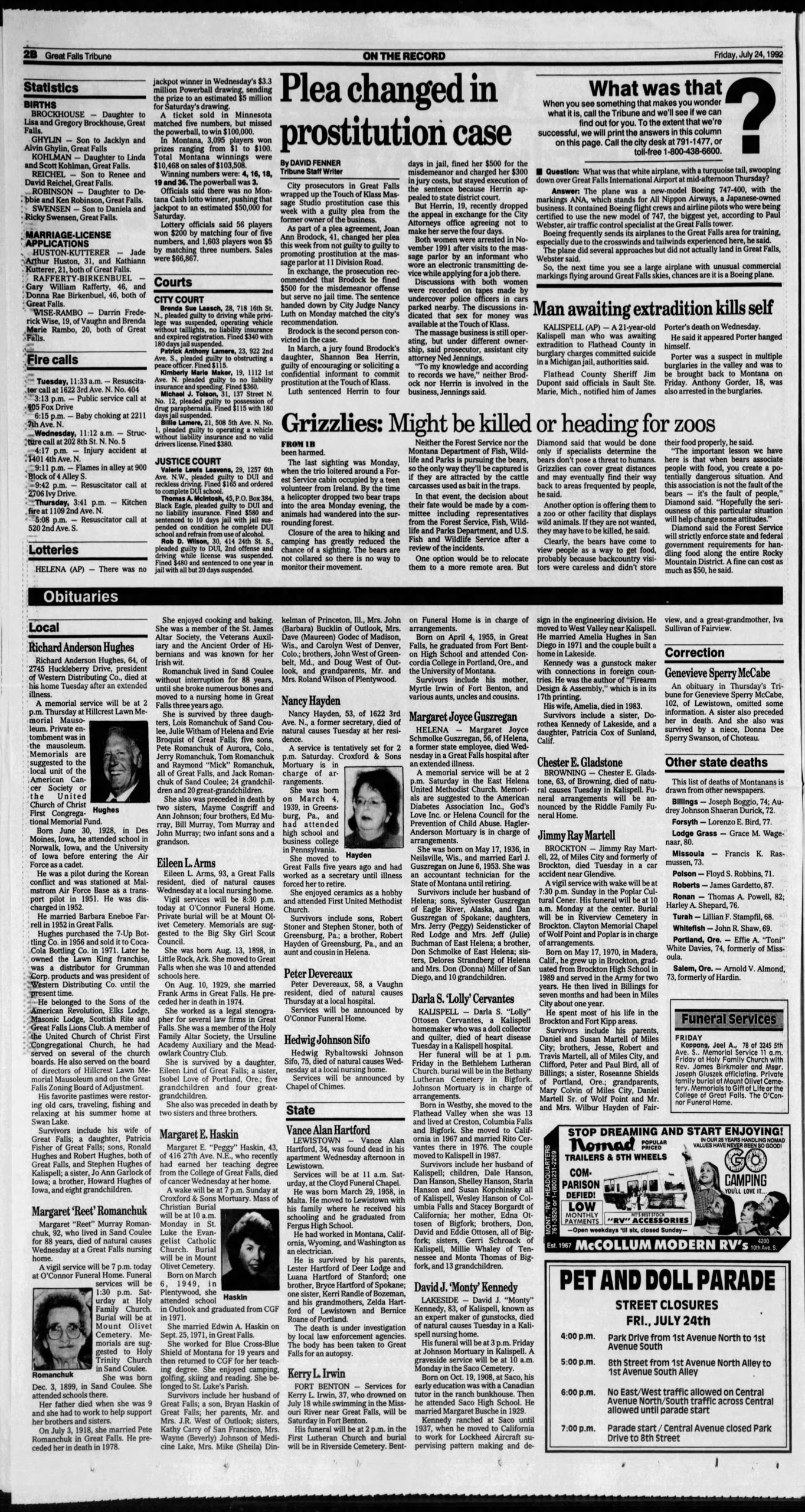 - Plea changed in prostitution case (1992)