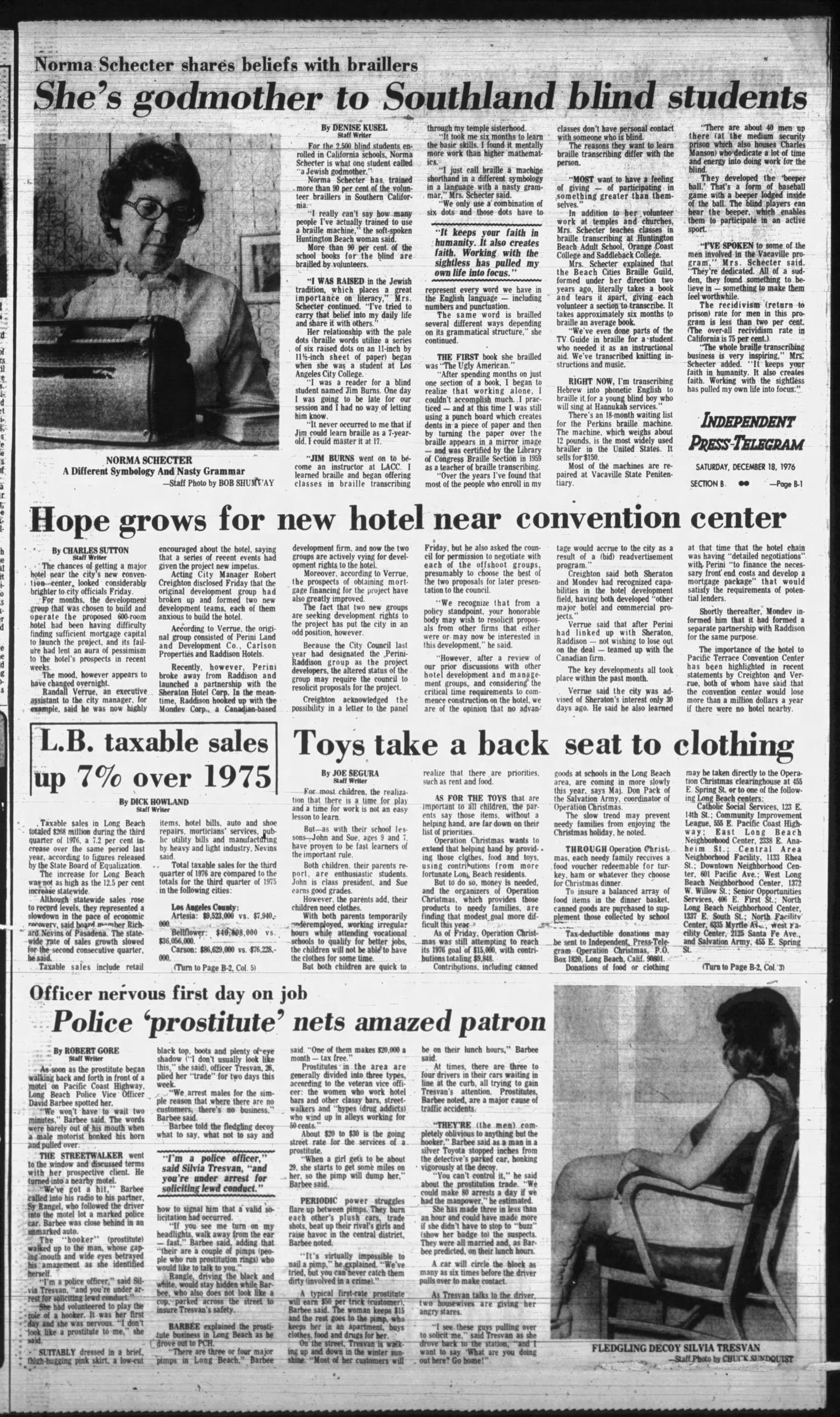 - “22 Prostitution Arrests in L.B.”, Long Beach Press-Telegram, October 30 1990.