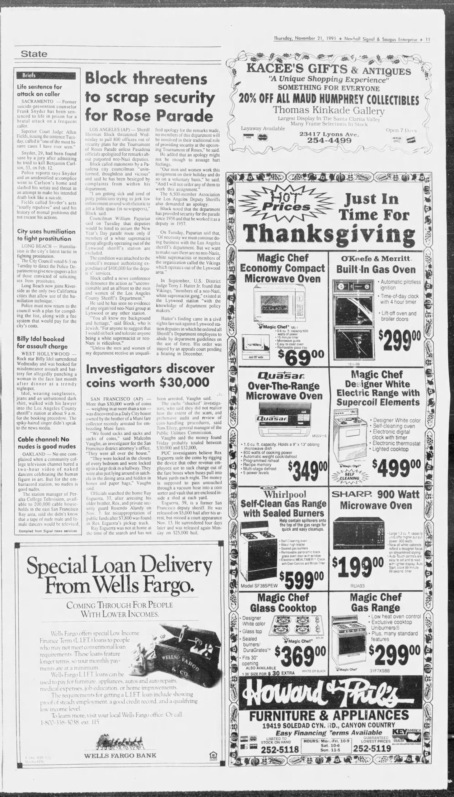 - “Calling All Cars; Prostitution Sting Results in 28 Arrests”, Long Beach Press-Telegram, November 10 1990.