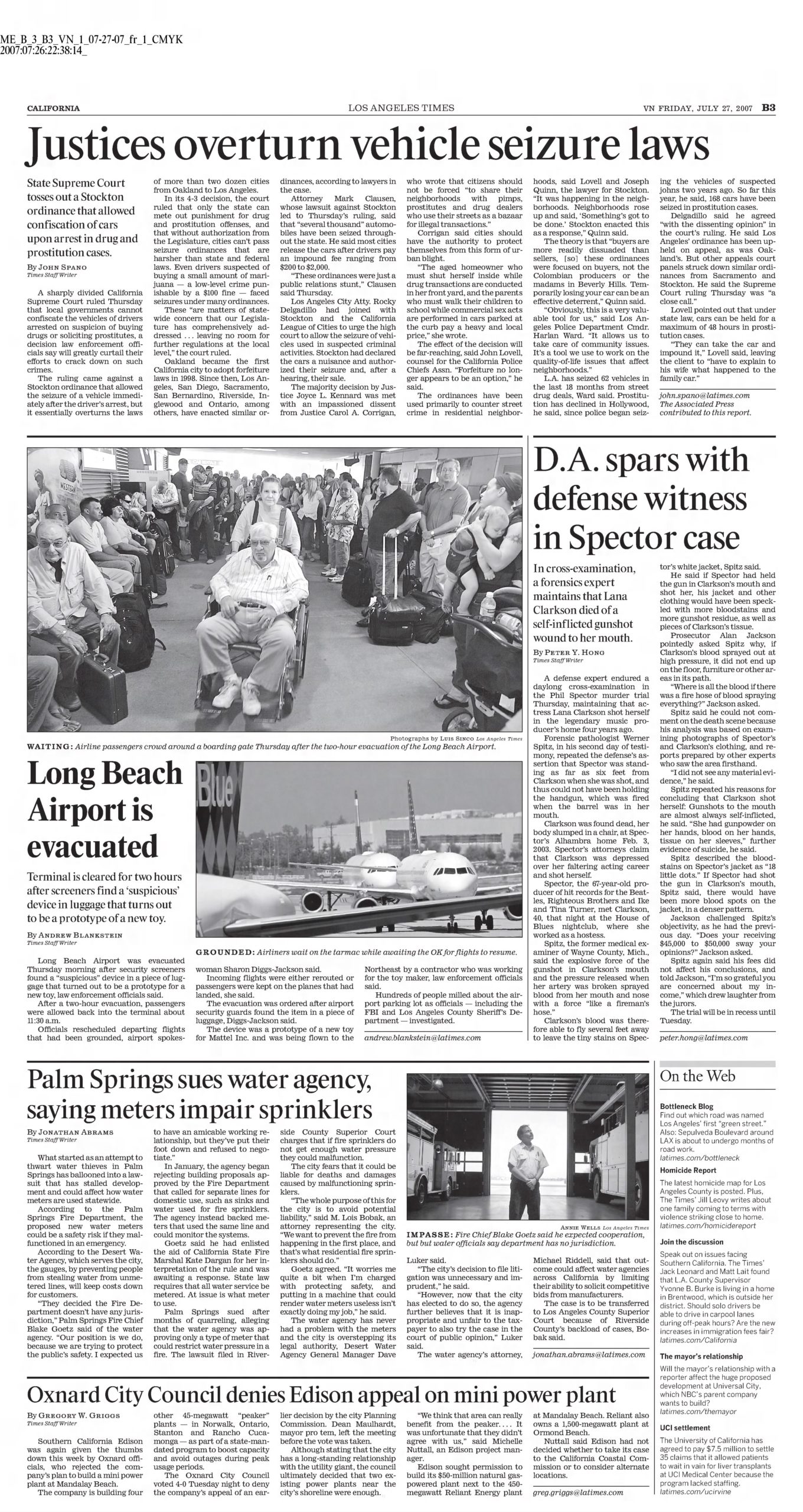 - “Justices Overturn Local Vehicle Seizure Laws”, Los Angeles Times, July 27 2007.