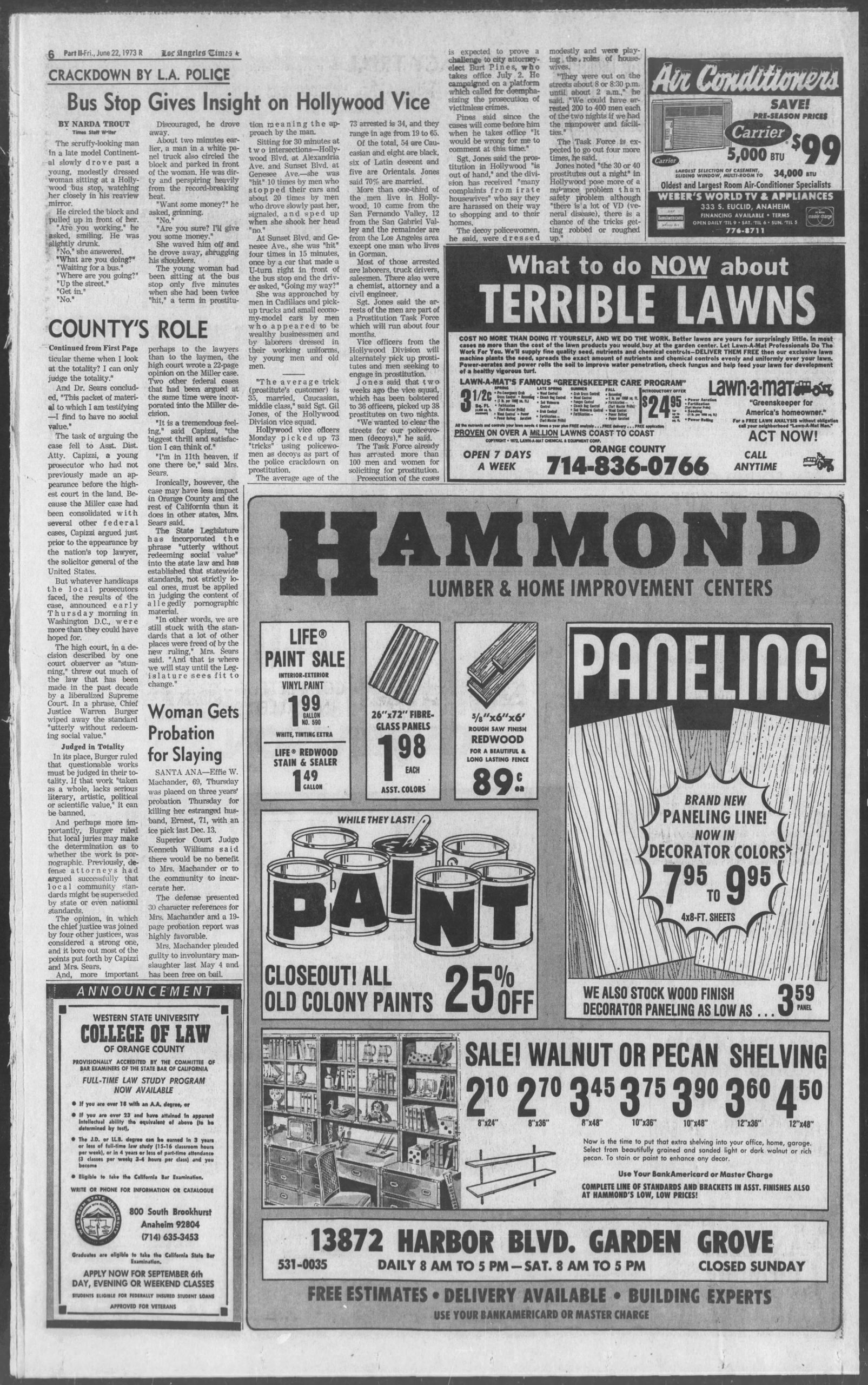 - “Irate Residents Ask Police Action on Prostitutes”, Los Angeles Times, May 20 1982.