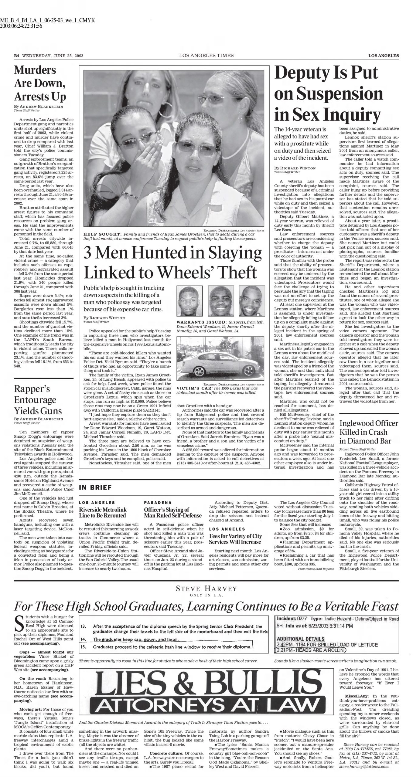 - “66 Men Arrested in Prostitution Sting”, Los Angeles Times, July 2nd, 1990.