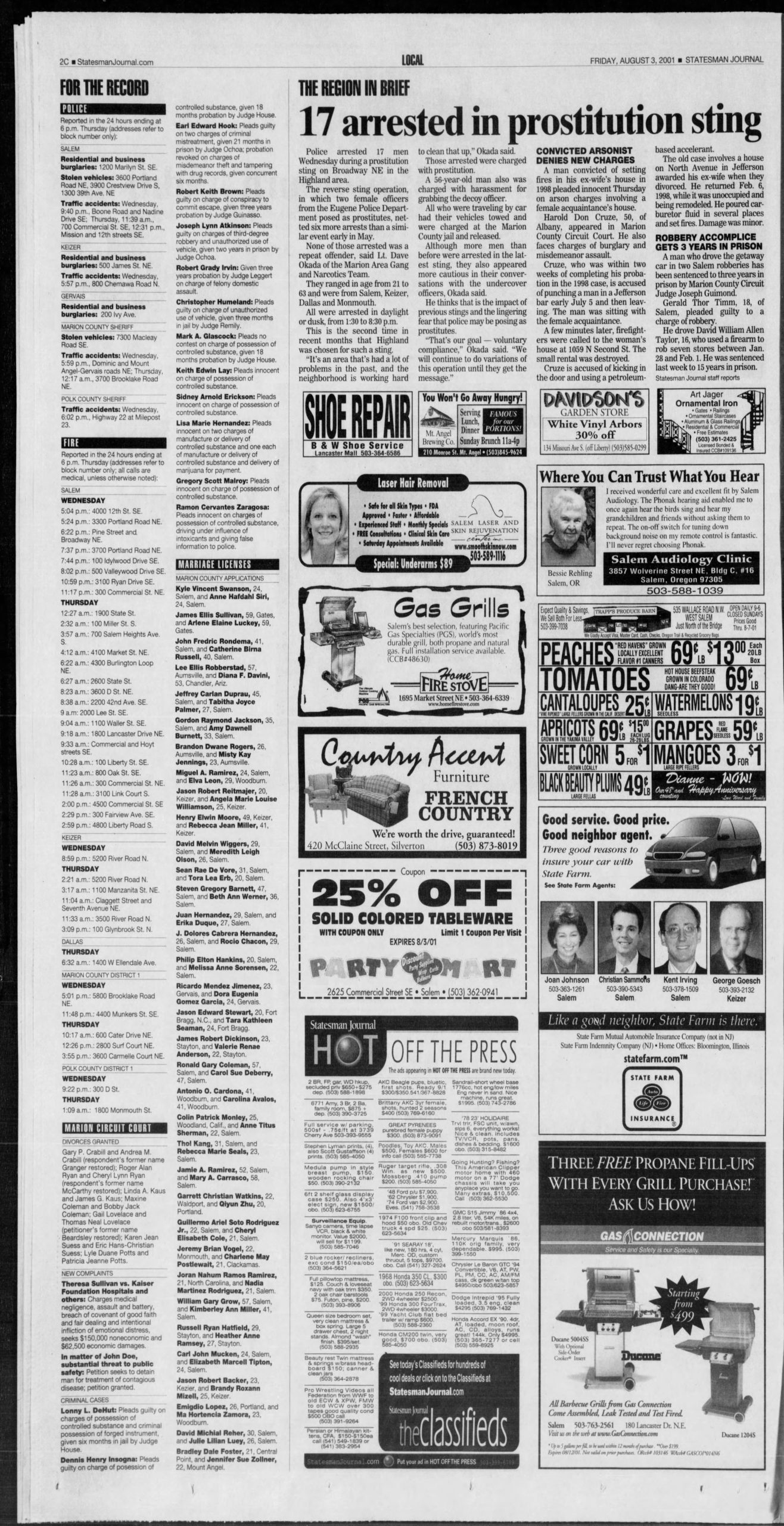 - “Prostitution Sting Leads to 6 Arrests”, Salem Statesman Journal, August 10 2007.