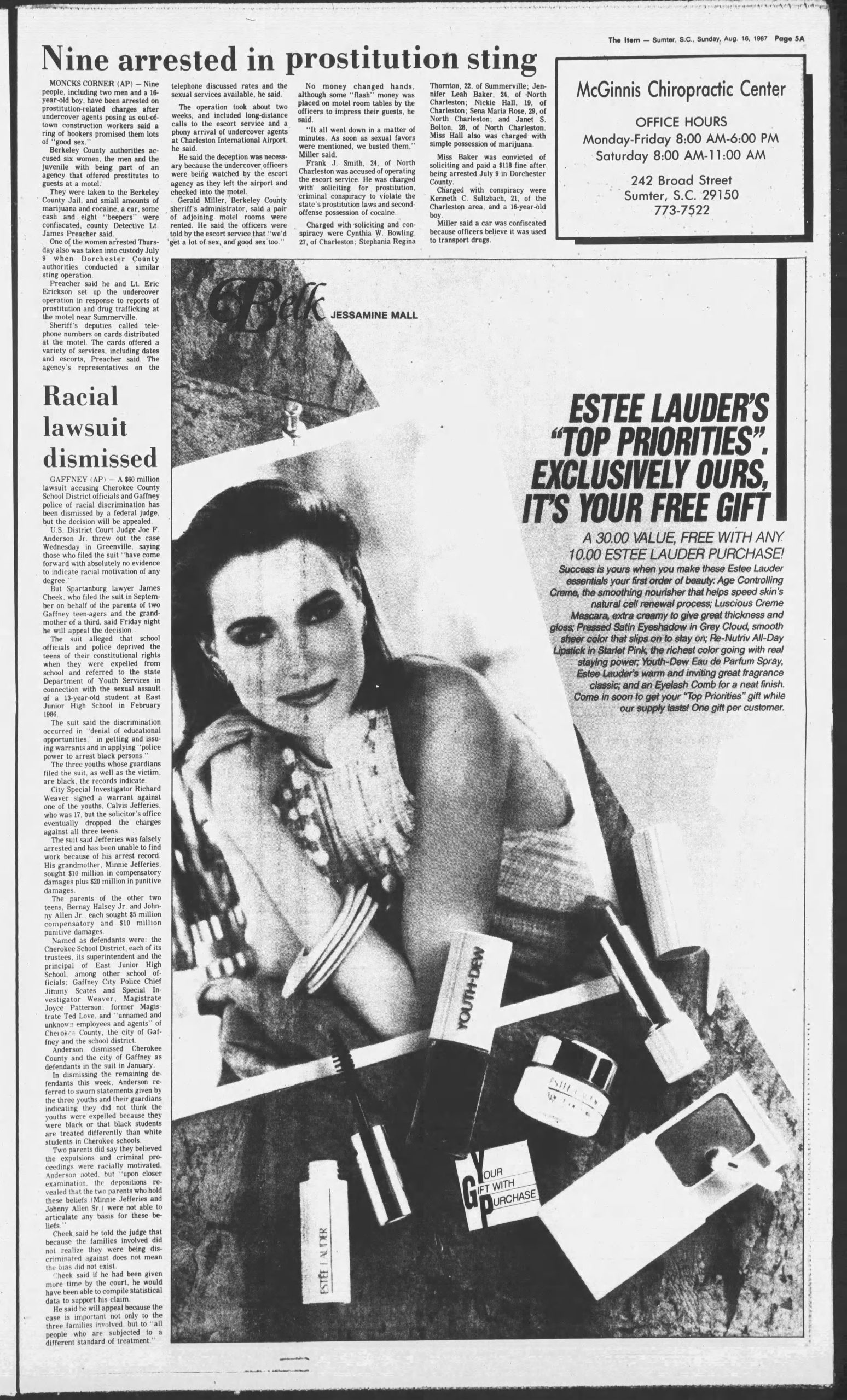 - Undercover agents arrest 9 on prostitution-related charges (1987)