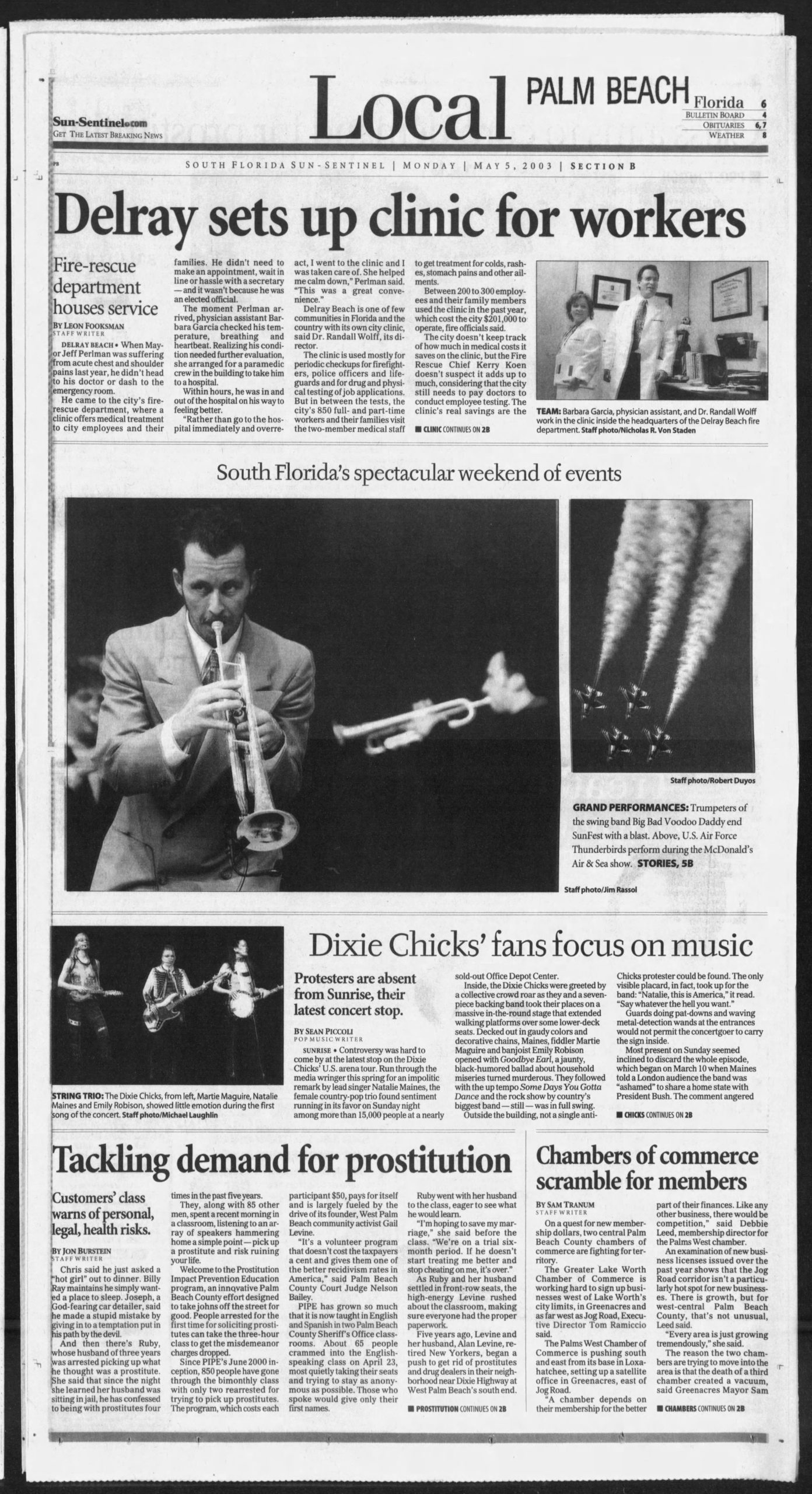 - “36 Arrested in County Prostitution Sweep,” Palm Beach Post, July 19 1990.