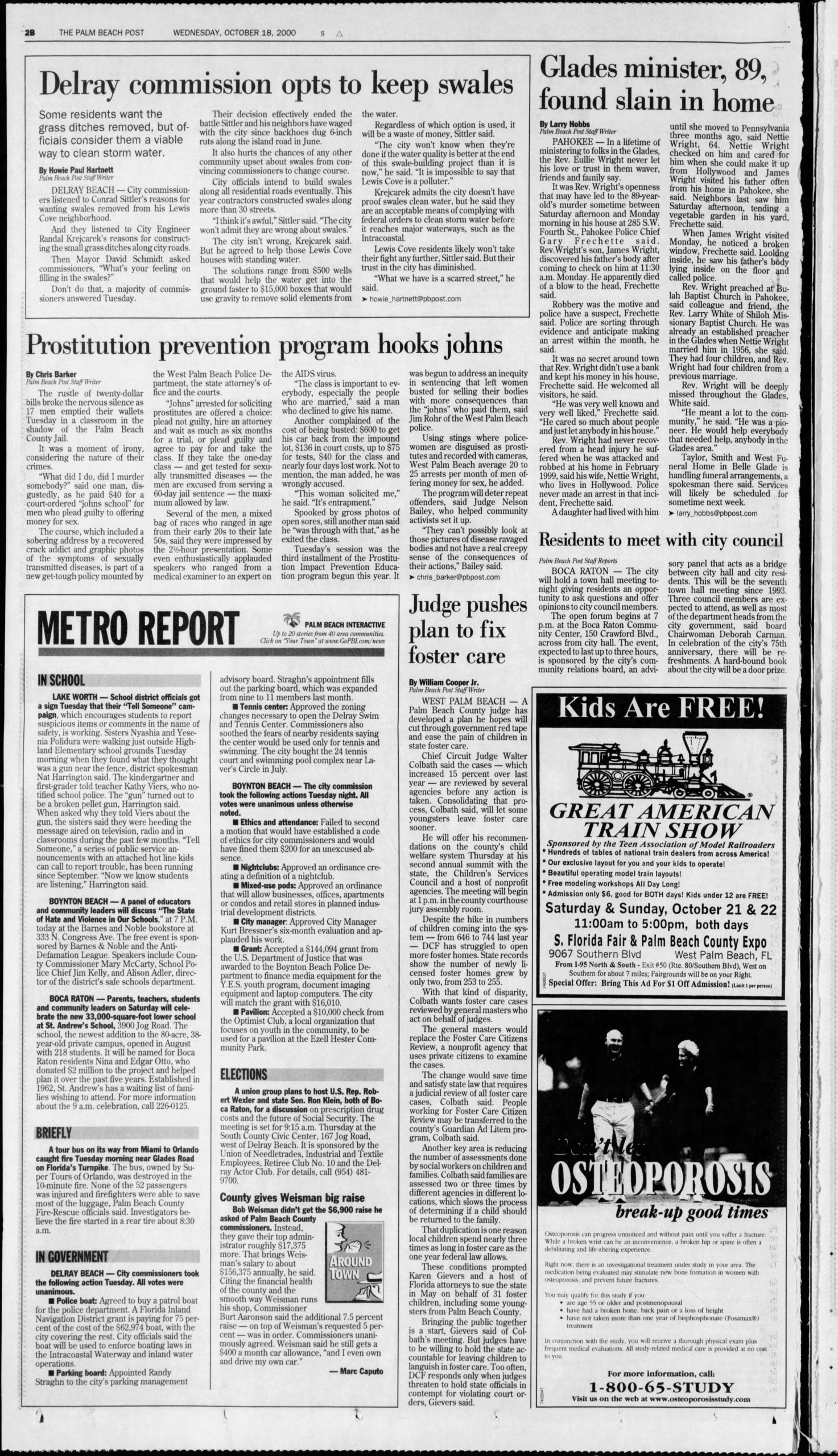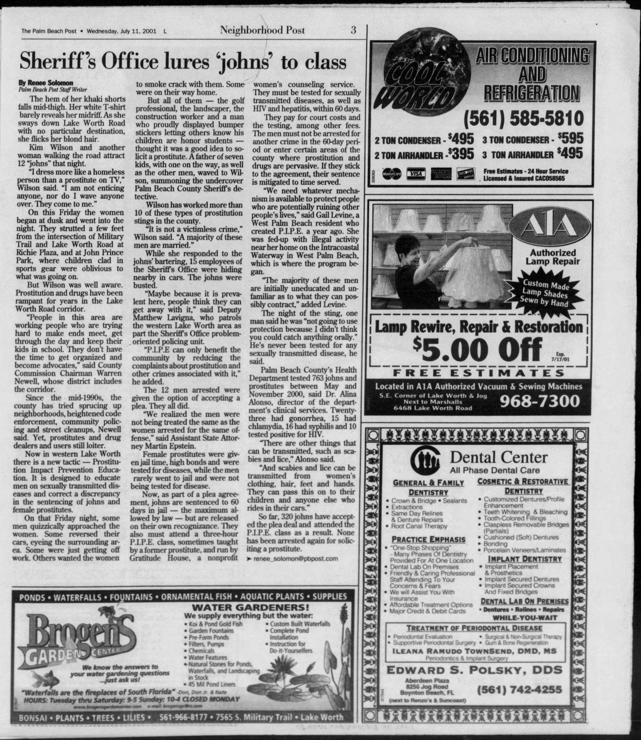 - “Sheriff’s Office Lures ‘Johns’ to Class,” Palm Beach Post, July 11 2001.