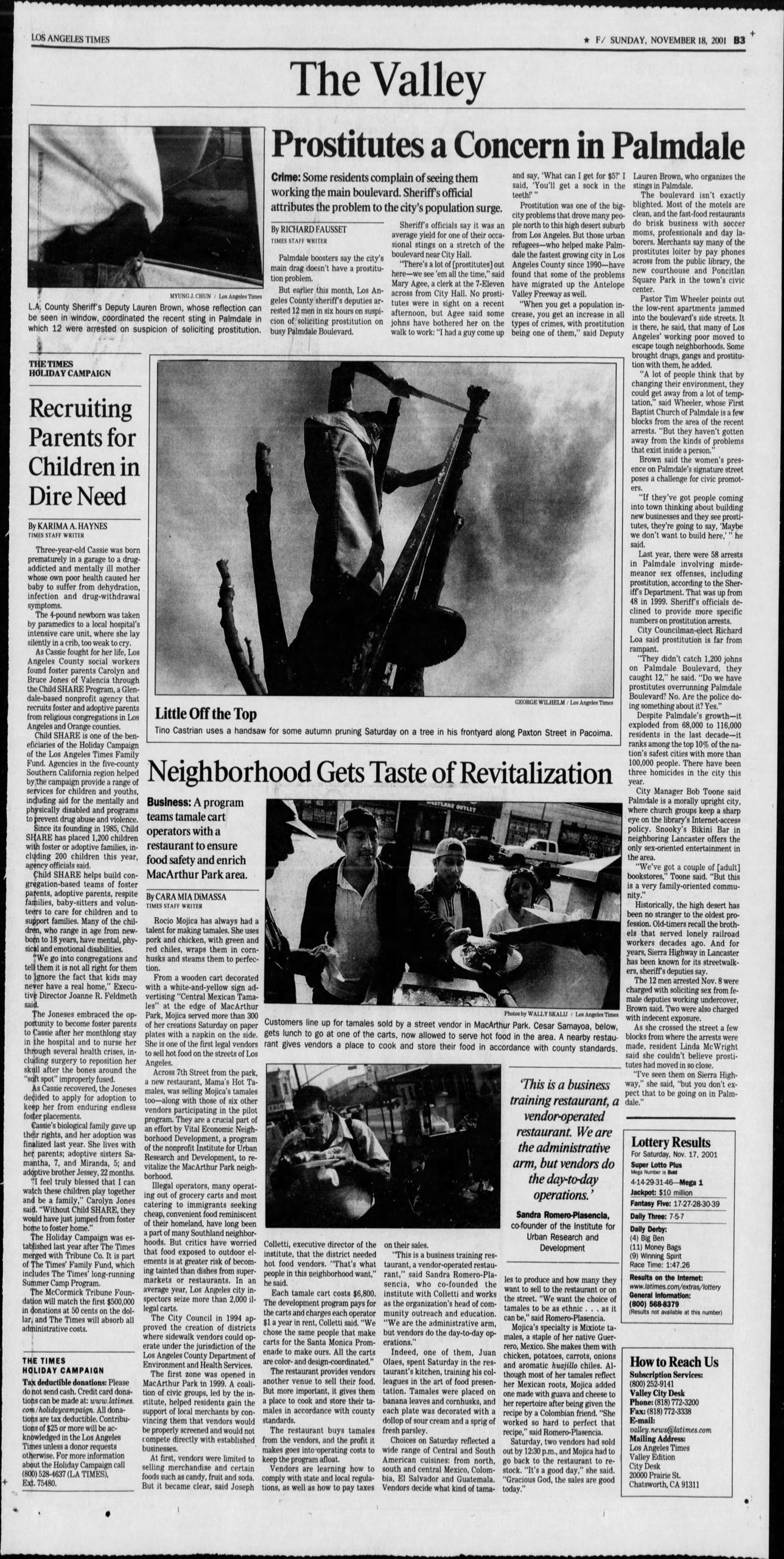 - “Prostitutes a Concern in Palmdale”, Los Angeles Times, November 18 2001.