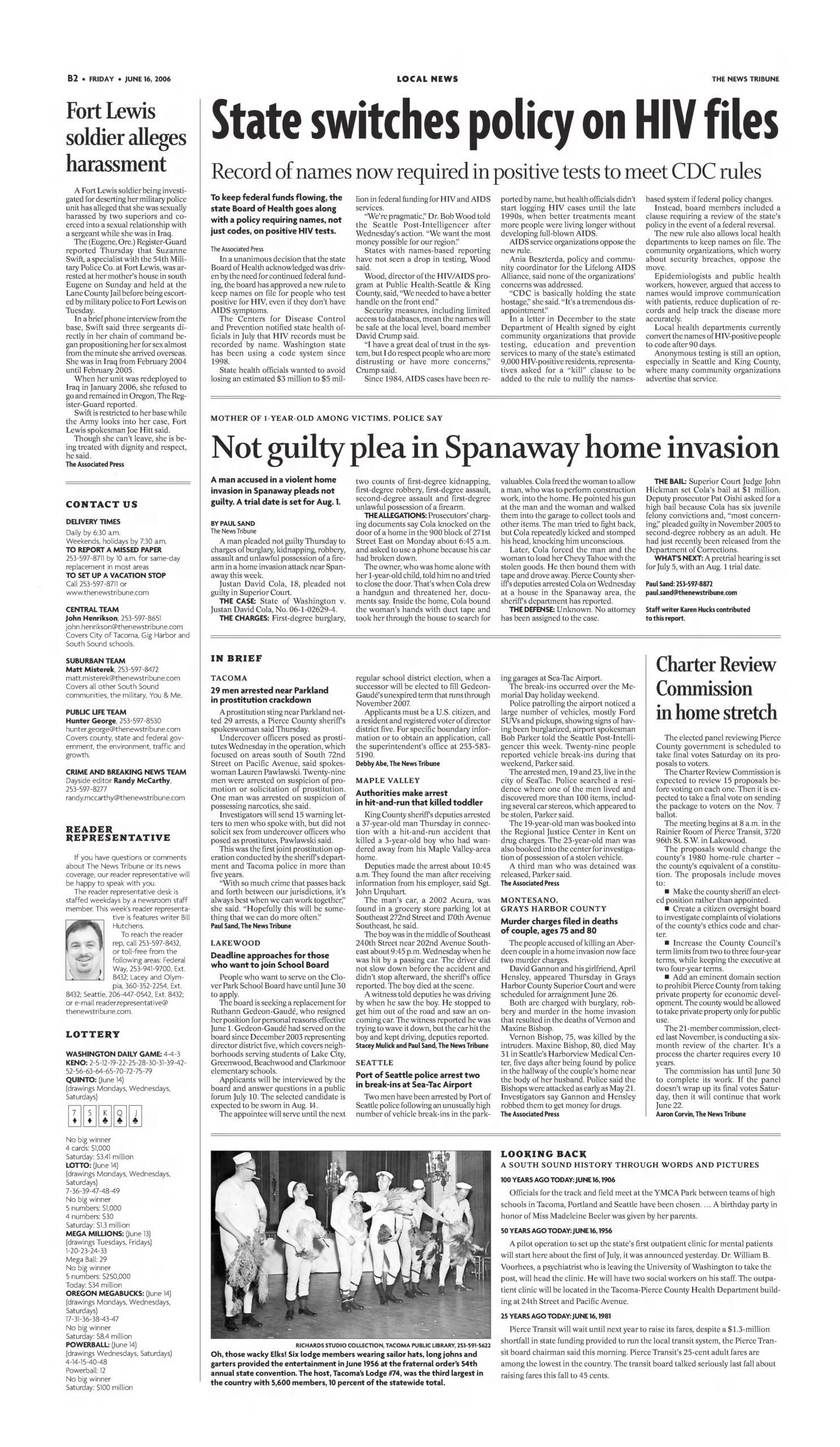 - “Gotcha! Five Men Snared in Prostitution ‘Sting'”, Tacoma News Tribune, February 10 2006.