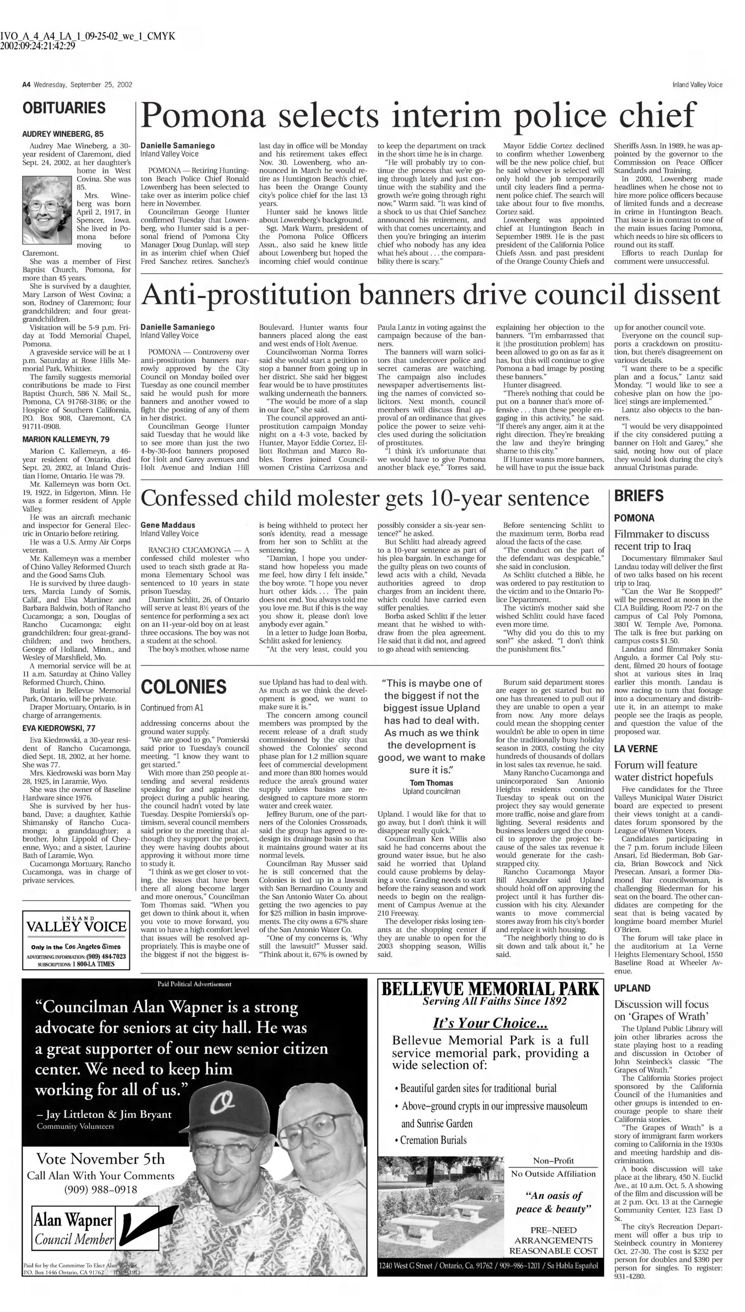 - “City to Vote on Anti-Vice Plan”, Inland Valley Daily Bulletin, September 22 2002.