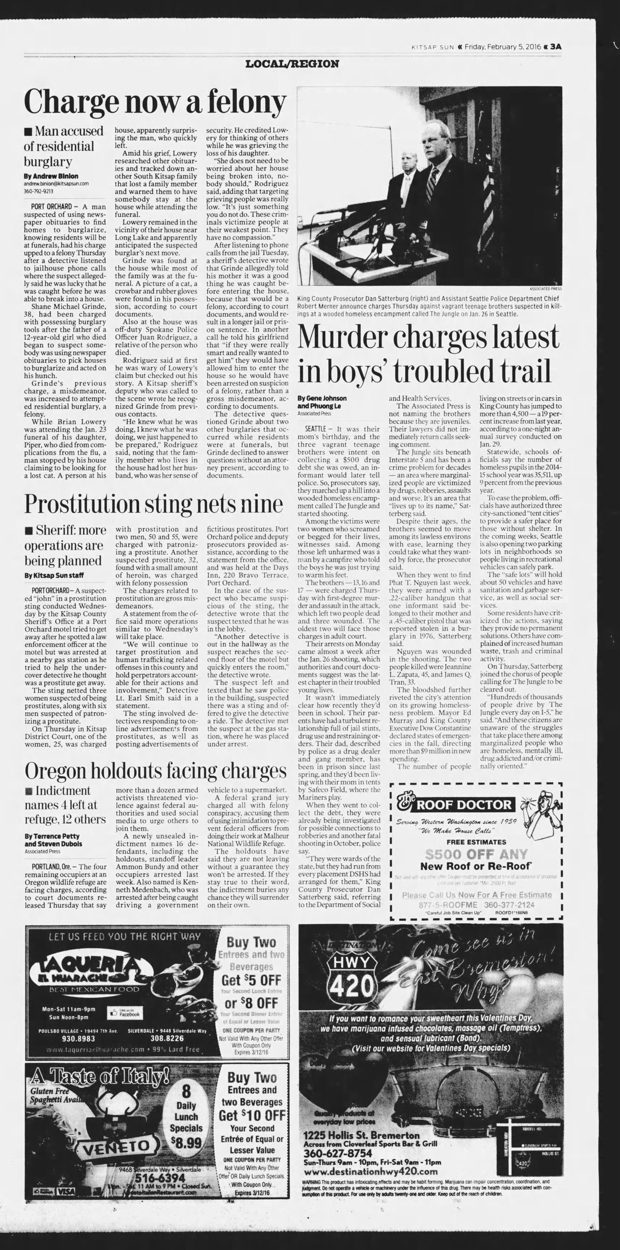 - “Arrests Made in Prostitution Investigation,” Port Orchard Independent, February 4 2016.