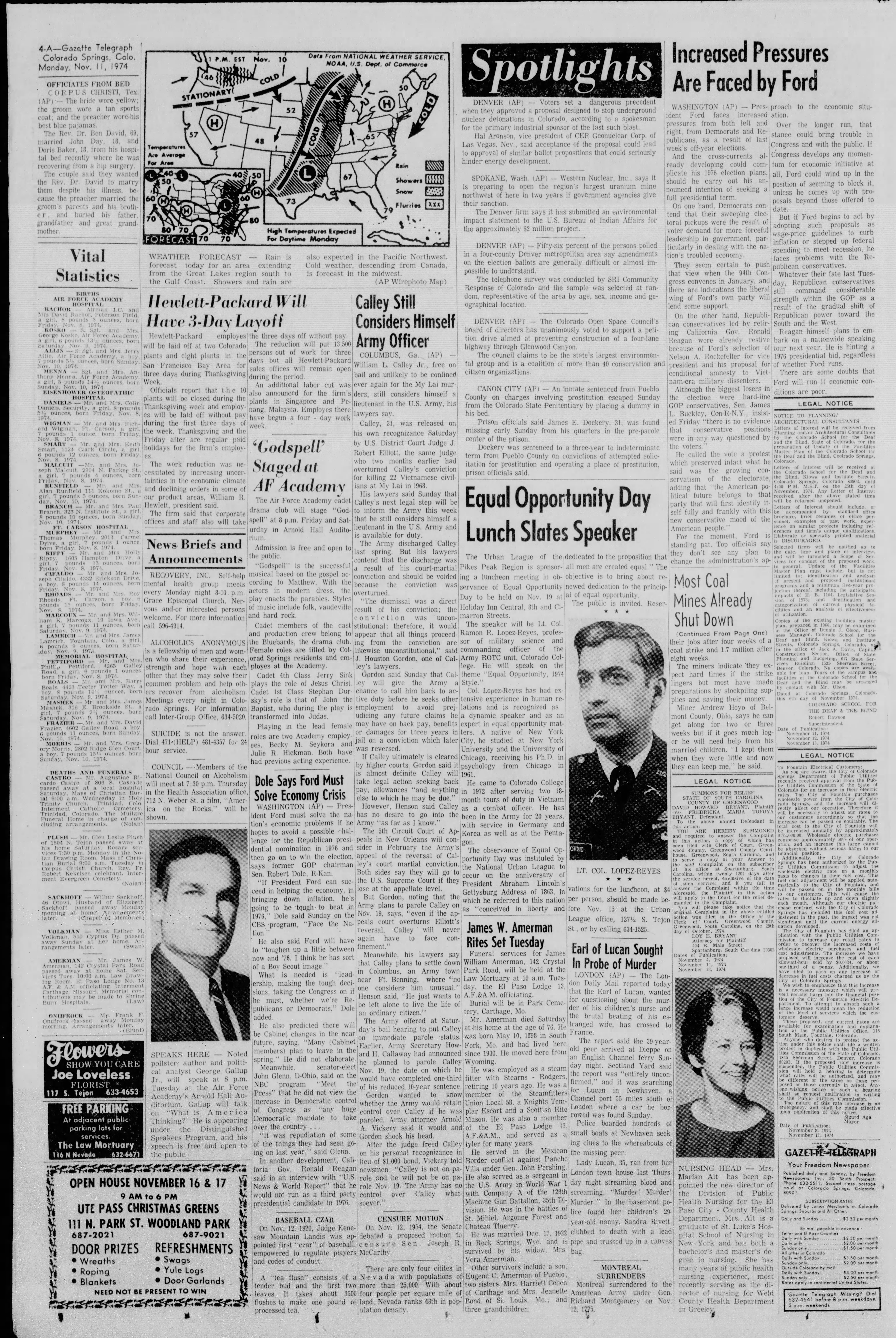 - Inmate sentenced from Pueblo County on charges of soliciting prostitution escapes (1974)