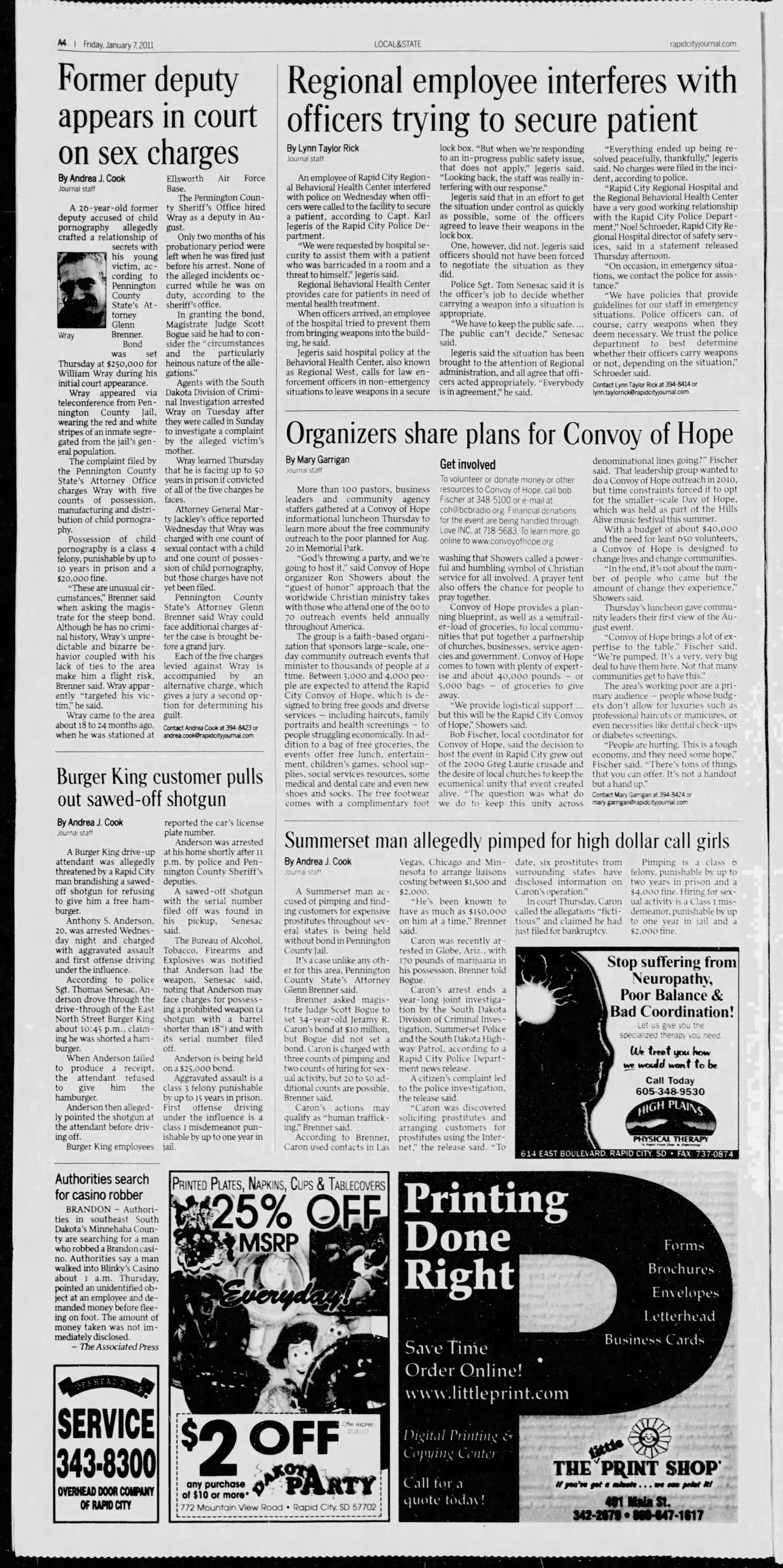 - “Prostitution Trial Begins in Rapid City,” Aberdeen American News, September 8 2001.