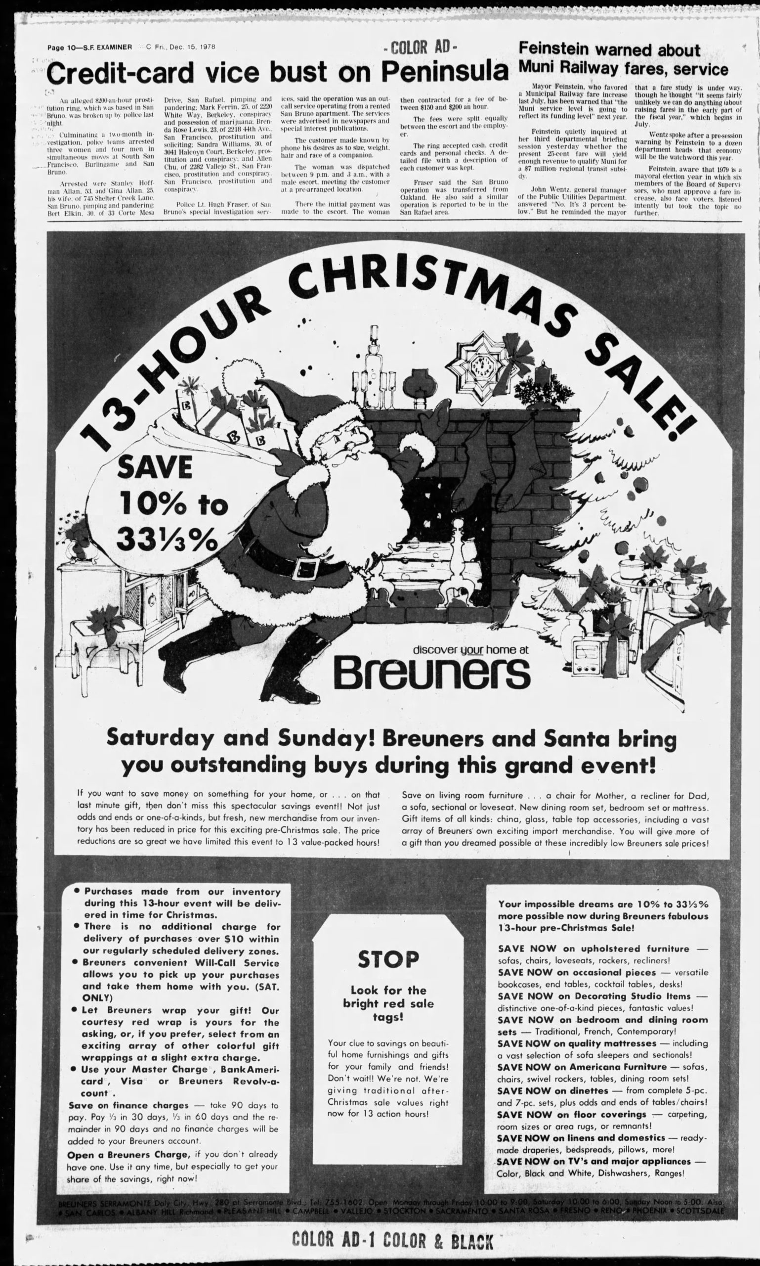 In effort to reduce prostitution and sex trafficking, and the wide range of other crimes related to the sex trade, local law enforcement has deployed various demand reduction tactics targeting individuals seeking to purchase commercial sex in the city, such as arresting sex buyers and disclosing their identities to the public. For example, in 1978, the SBPD uncovered an alleged $200-an-hour prostitution ring based in San Bruno. Police conducted a reverse sting, placing advertisements for commercial sex services in newspapers to which potential sex buyers could respond by calling to arrange a meeting. They also conducted a sting targeting those providing prostitution. As a result of the joint operation, three prostituted women were arrested on prostitution charges and four male sex buyers were arrested on charges of either prostitution, conspiracy, and/or pimping/sex trafficking and pandering. The identities of arrested offenders were included in reports by local media outlets.
