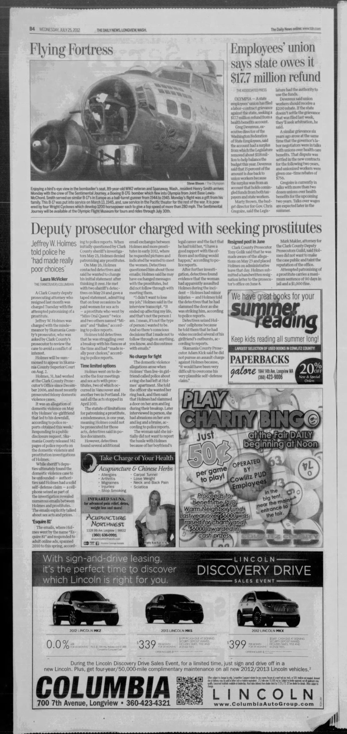 - “Ex-Prosecutor Accused of Soliciting Prostitutes”, Vancouver Columbian, July 24 2012.